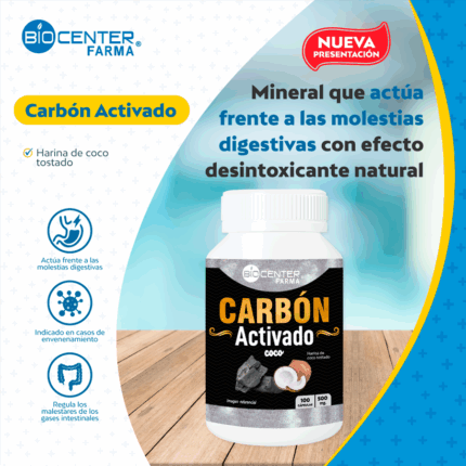 Carbón activado, BIOCENTER FARMA (100 capsulas)